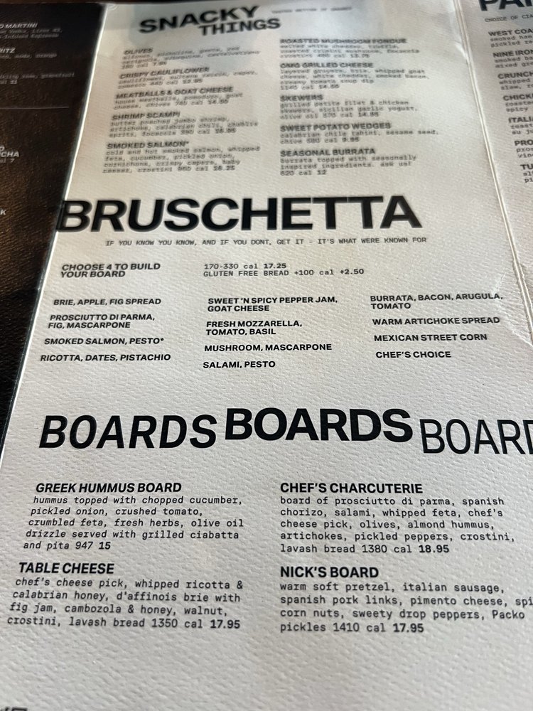 prosciutto di parma, spanish chorizo, salami, whipped feta, chef's cheese pick, olives, almond hummus, artichokes, pickled peppers, crostini, lavash bread